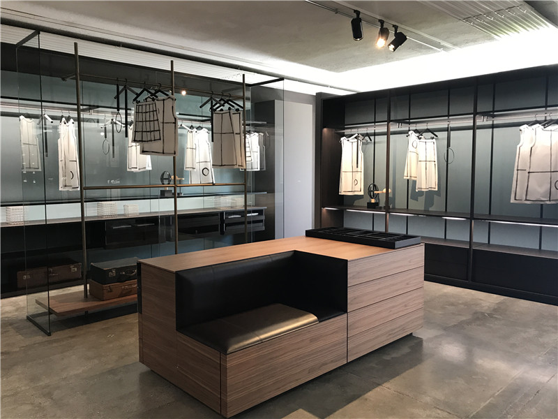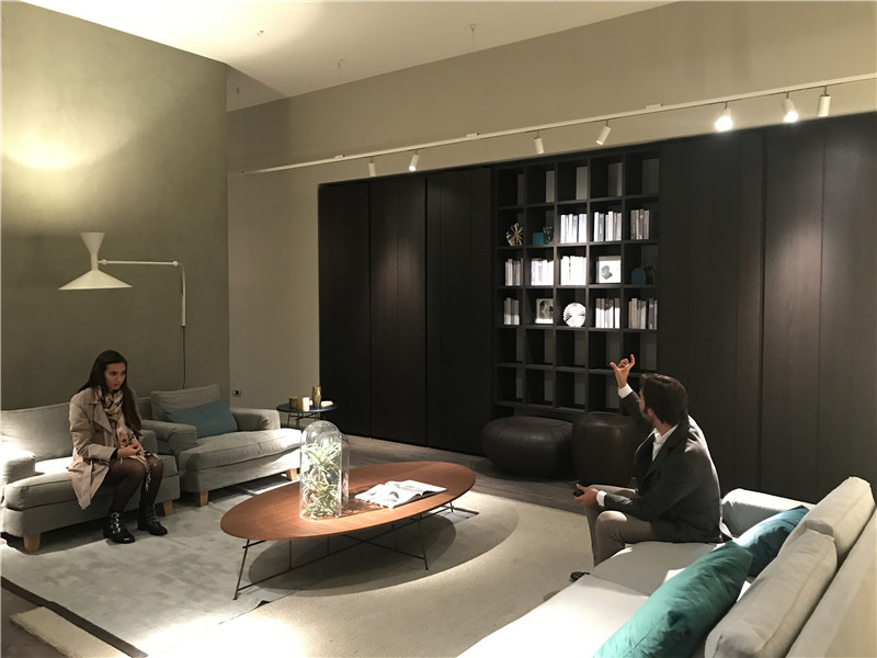 LEMA負責人正在為意俱意大利方的同事講解柜門的巧妙設計。