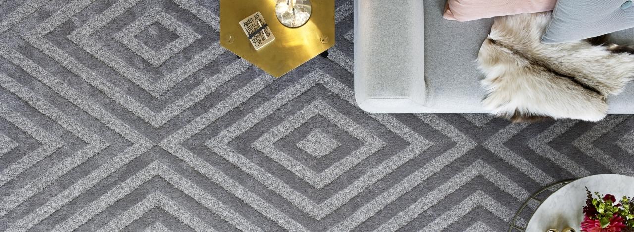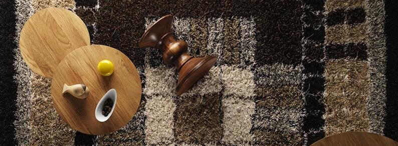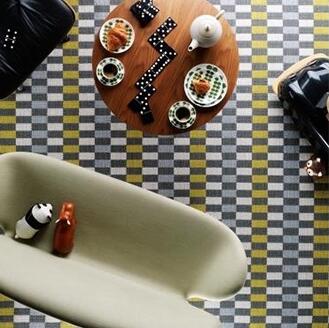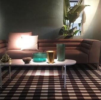 格子系的地毯,不同的顏色拼接,或在純色地?cái)偵嫌貌煌伾木€隔開(kāi),
