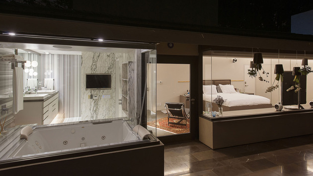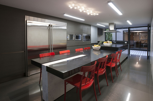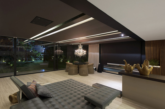 小意推薦:混凝土結構承受住了整棟樓的重量,使大量玻璃得以取代原始墻壁,將別墅設計成一種真空狀態,貼近大自然的同時也不忘享受生活,意大利奢侈家具襯托品味。