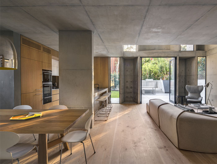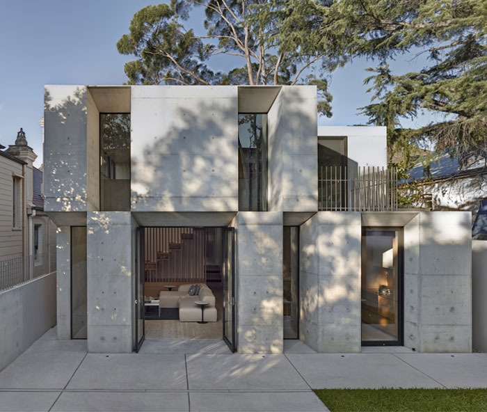 這是來自悉尼的一棟名為Glebe的混凝土別墅,建筑師Nobbs Radford在這座悉尼原房屋基礎上設計了一個微妙的現代延伸,房子擴建的地方,墻壁是厚厚的水泥混凝土,在墻壁的很深處鑲嵌著許多窗戶。