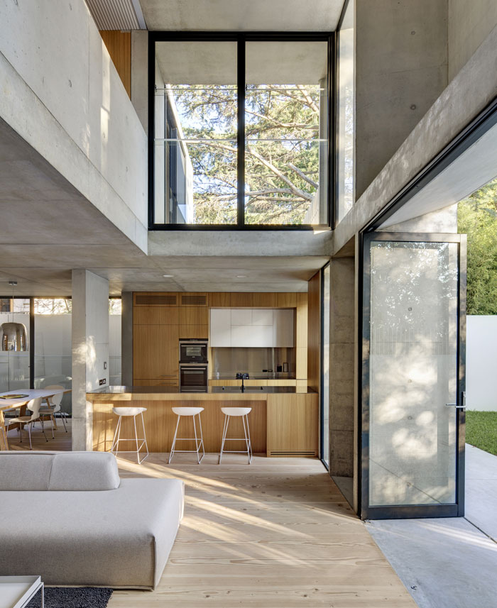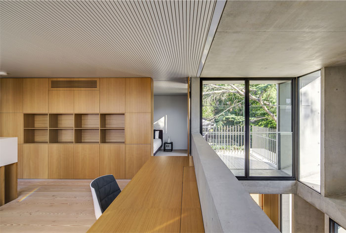 裸露的混凝土表面一直延伸到內部,與內部空間溫暖的木質元素——橡木家具和細木工制品,還有松木地板形成了對比。這種對比在建筑外觀得到再次強調,展現空間自身的自然屬性。