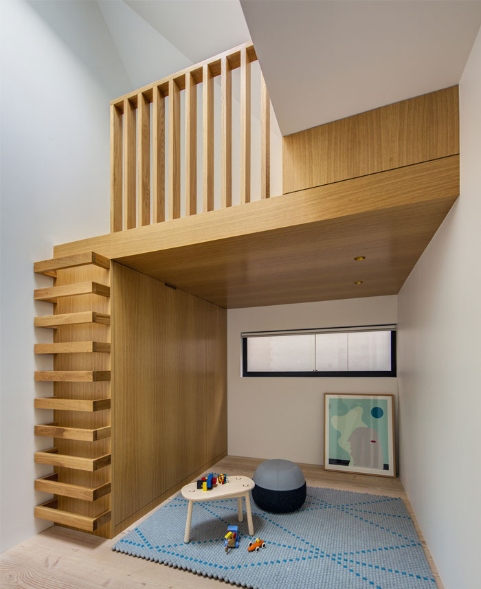 因為墻壁的特殊結構,這個兩層樓的建筑還增添了許多凹間,給主人提供了私密空間。