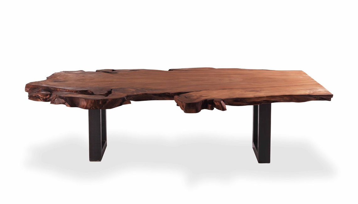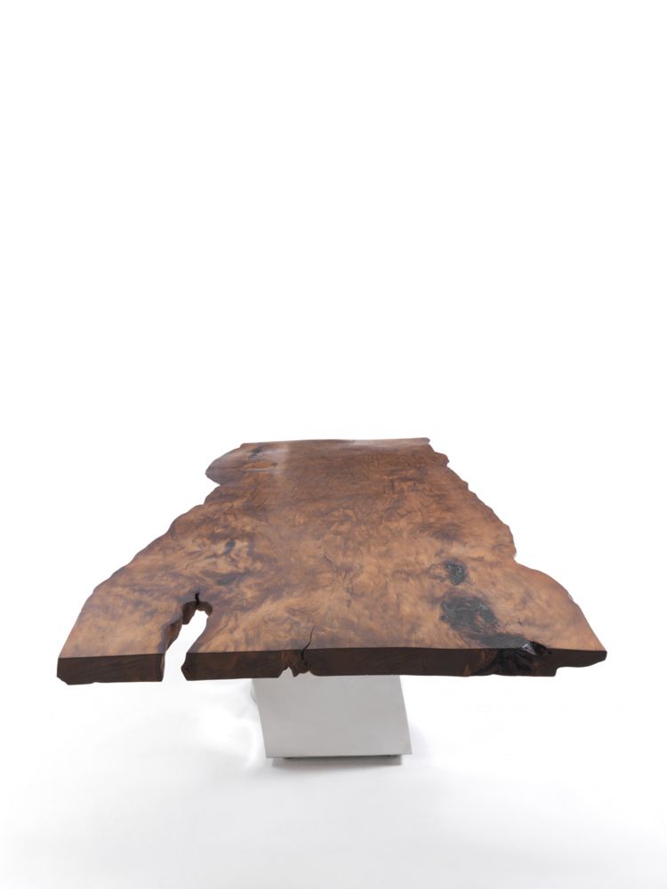 餐桌桌面由新西蘭古老的木材——貝殼杉木制成,國(guó)際著名的藝術(shù)家赫利登·希沙克在設(shè)計(jì)這款餐桌時(shí),將鍛造的鋼片作為餐桌的底柱,這是自然產(chǎn)物與人工材料的結(jié)合。