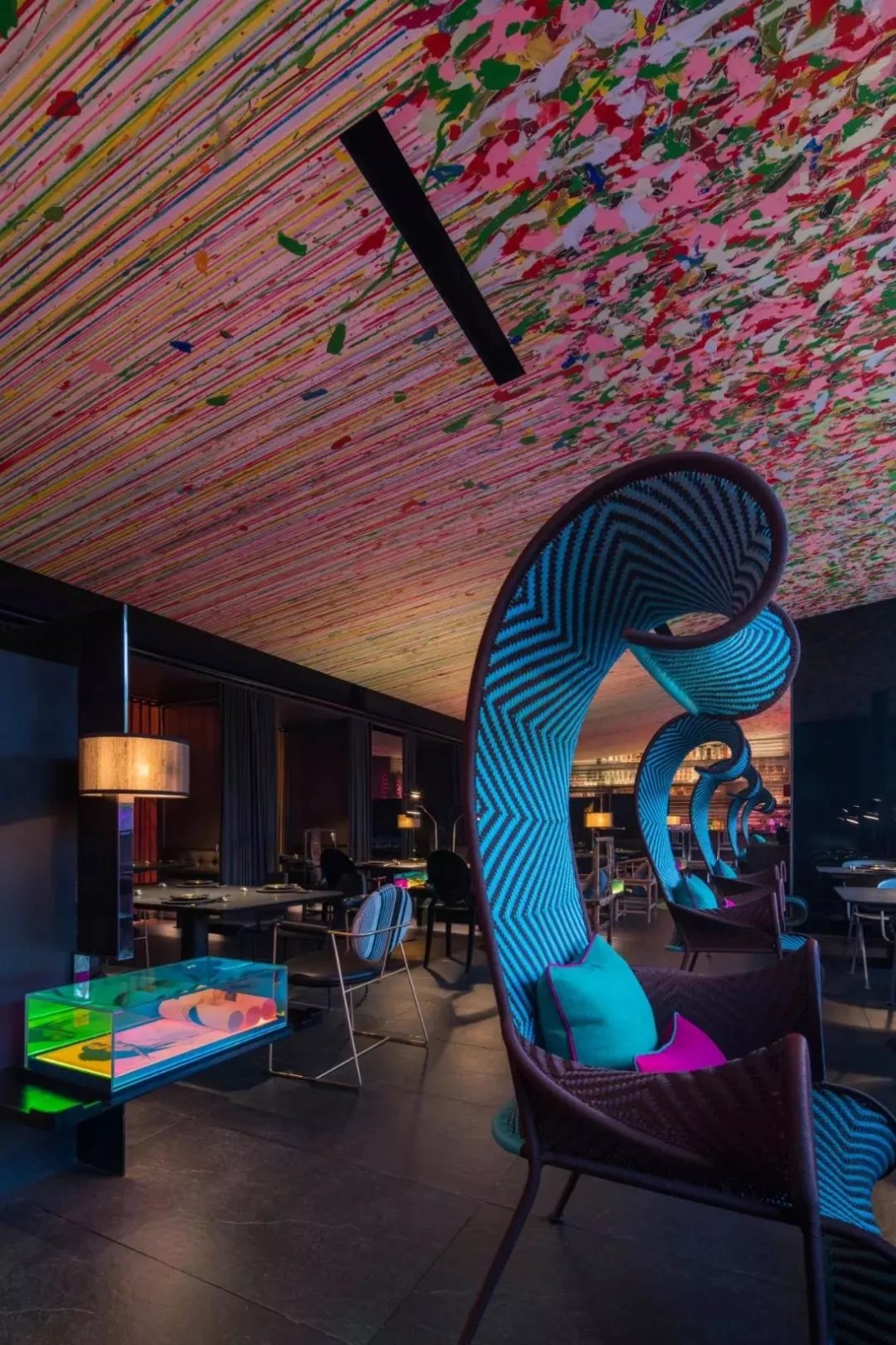 每一張桌椅,每一個(gè)角落都有著它與眾不同的故事,與之前幾家玉玲瓏不同,這家玉玲瓏,除了設(shè)計(jì),更多了藝術(shù)的靈魂。總共11個(gè)包廂加上一個(gè)散座區(qū),呈現(xiàn)著12位藝術(shù)家的美學(xué)世界。